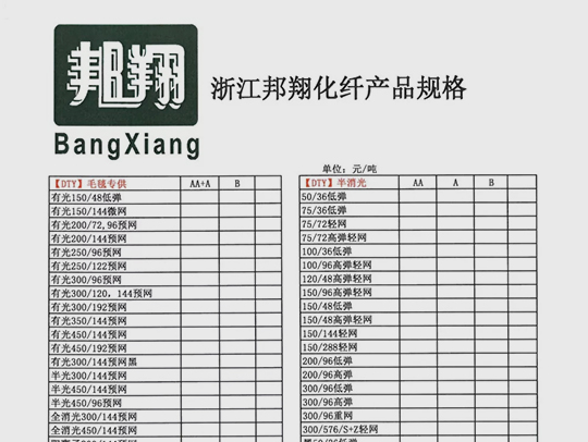 Zhejiang Bangxiang Holding Group 製品仕様表-製品リスト